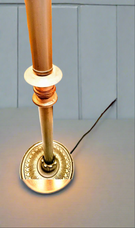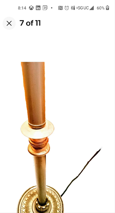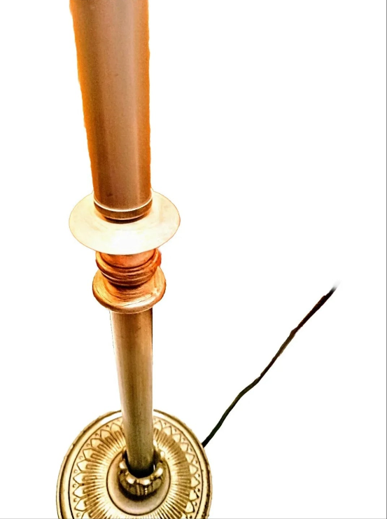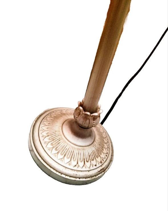 2 contemporary iron ceramic plastic lamps that are perfect for the table. The color and appearance is finished with an aluminum iron mix flower shape look. Tested works fine sockets intact. Bases have been repaired to hold an upright position. The husk and seating ring going into the base is a little loose but the lamps are firmly in place. (If need more info on this send a message as the part may be strengthened from being in this loosened positioned state.